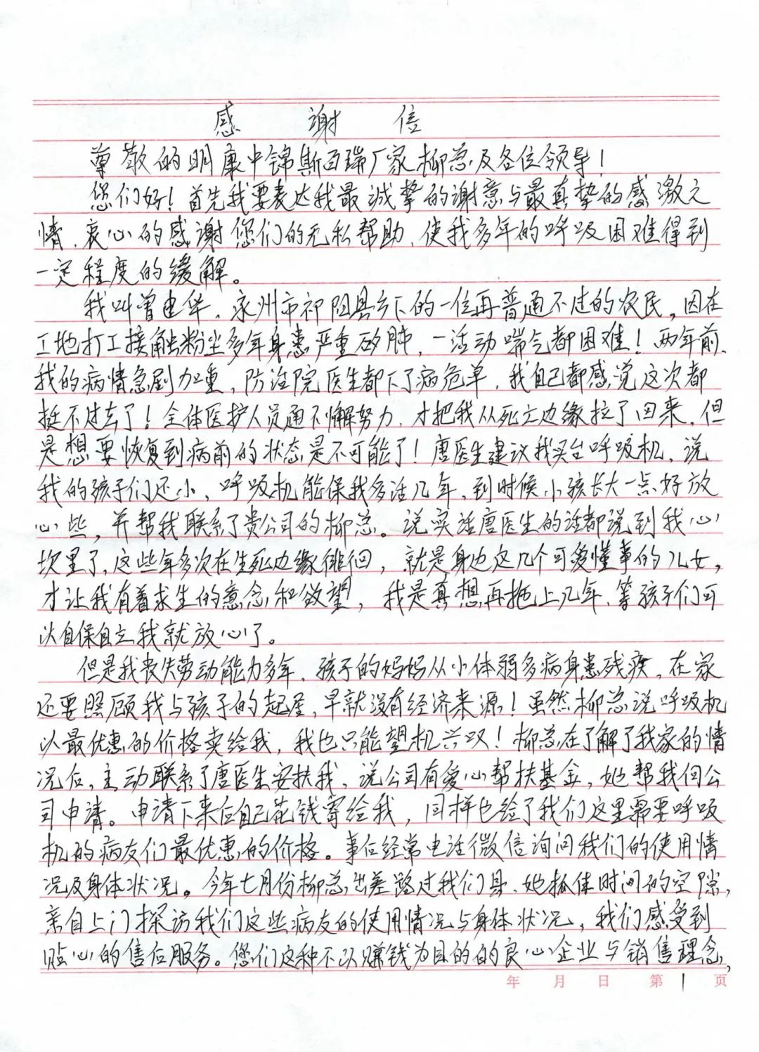 公司當(dāng)?shù)氐匿N售經(jīng)理當(dāng)時了解到曾大哥家中情況后,隨即便向公司申請愛心幫扶基金給他免費寄了一臺公司的斯百瑞ST-30F無創(chuàng)呼吸機。