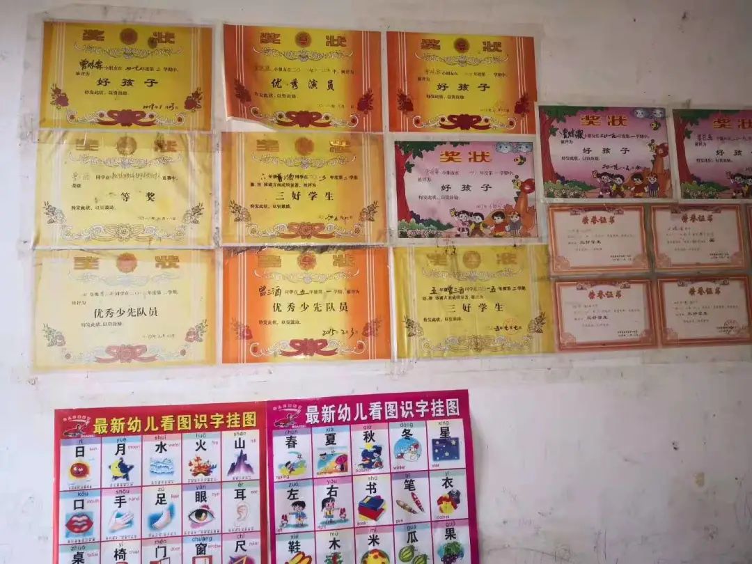 圖2為曾大哥家中三個小孩所獲得的貼滿墻的獎狀