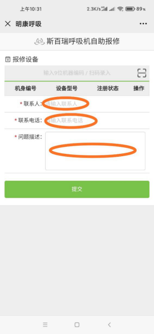 2. 輸入設(shè)備編號或掃描機(jī)身上二維碼,填寫里面信息及故障現(xiàn)象提交即可。