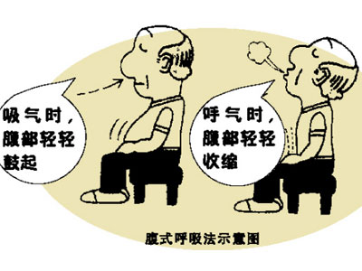 ③用縮唇呼吸法吸氣,腹部同時(shí)向內(nèi)凹。閉嘴,用鼻呼氣,腹部同時(shí)外凸,稍停片刻。