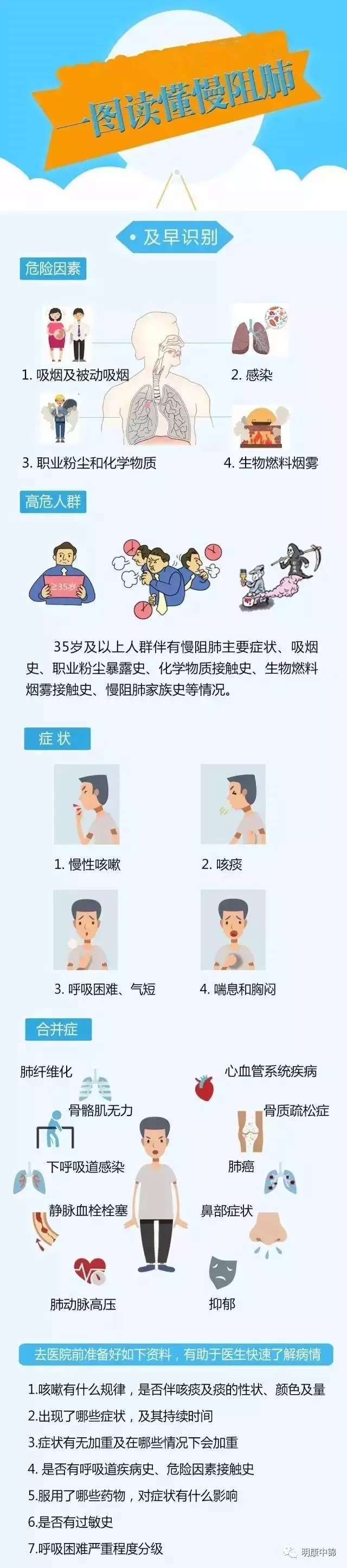 3、慢阻肺早期幾乎沒(méi)有癥狀,人們對(duì)疾病警惕性不高,長(zhǎng)期忽略甚至忽視治療,如出現(xiàn)長(zhǎng)時(shí)間咳嗽、氣短必須及時(shí)就醫(yī)。